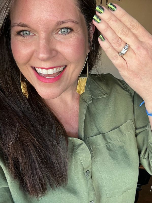 Using Color Street nail polish is a HUGE game changer in life. I can slap on a set of these real nail polish strips in less than 10 minutes and then take them off in less than 5. I can have holiday nails on Thursday, Friday night football game nails on Friday (it's Texas here, y'all), and weekend ready nails for Saturday night. All for cheap, all without ruining my nails, and all without leaving my home to go to a nail salon.